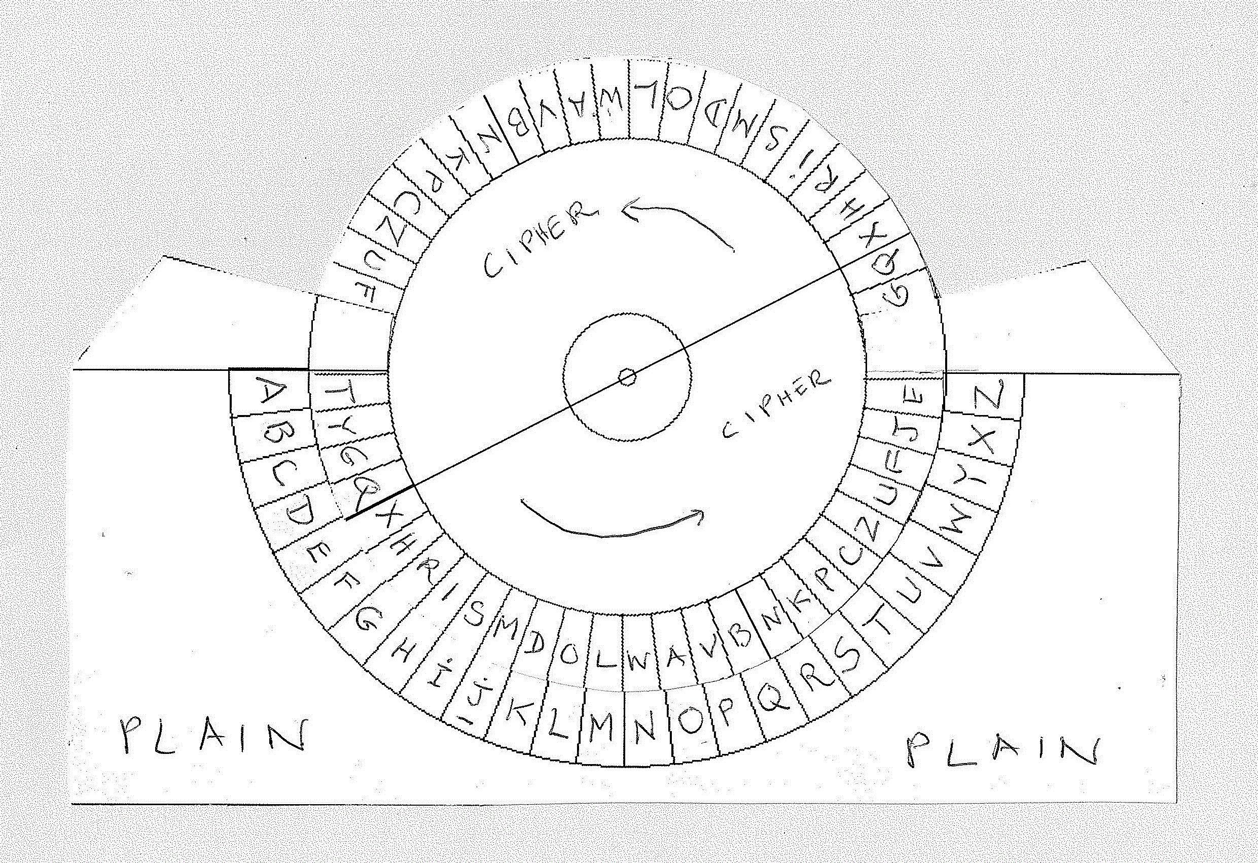 Copy and paste these pictures into a graphics program (for example, Paint). Print them. You can glue the two sheets onto a piece of cardboard (or better yet, a sheet of plywood). Then cut out the wheel and the wheel support. Attach the wheel with a thumbtack: this is the trickiest step. The choice of axle and precision will be crucial to the result. Then fill in the letters and use the emulator!